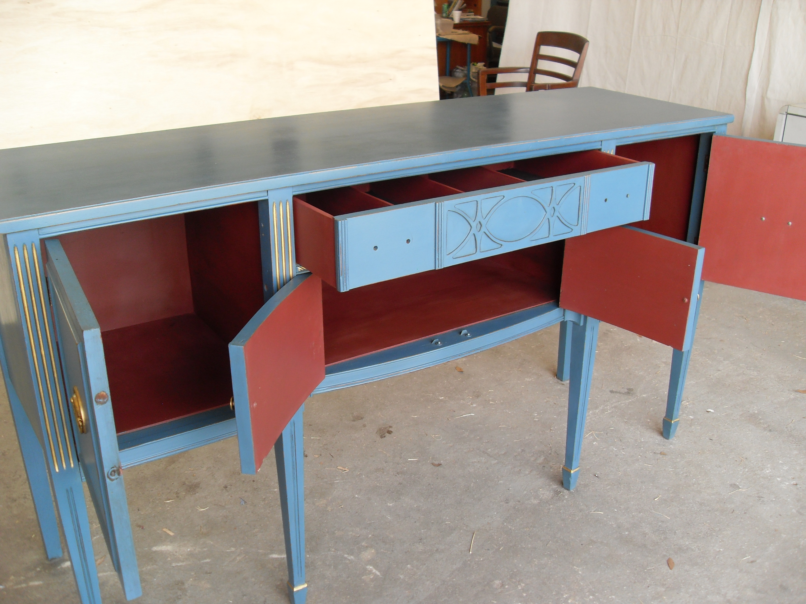 This is Annie Sloan Aubusson Blue with Dark Wax.